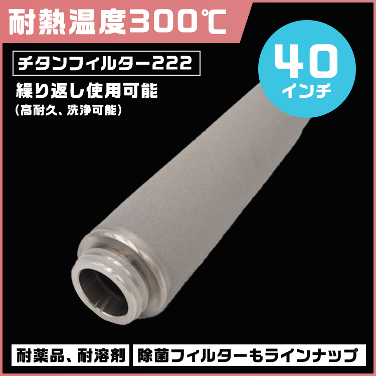 ろ過チタンフィルター耐熱仕様はチタン製高性能液体用フィルターです。40インチ(約1016mm)