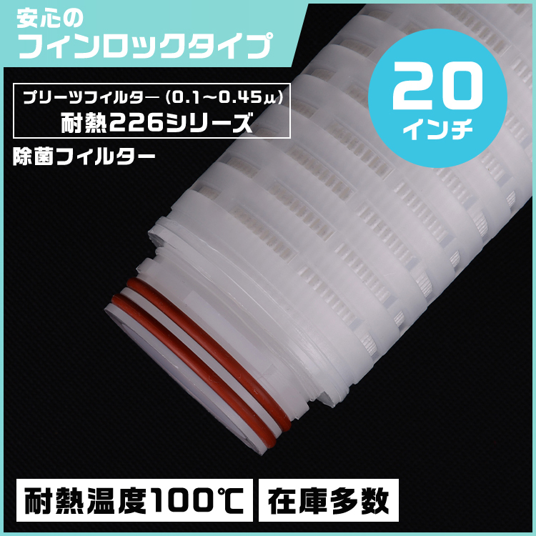 プリーツフィルター 耐熱仕様 20インチ(約508mm)タイプ226 フィンロック 除菌対応