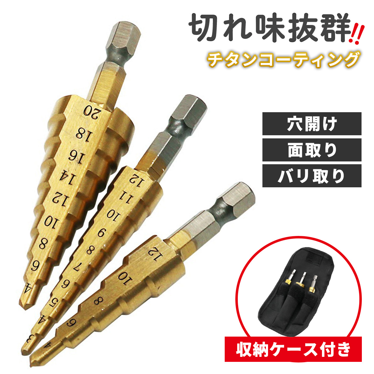 ステップドリル ステンレス用 3本セット ドリルビット 刃 ドリル部品 穴あけ ドリル スパイラルドリル 12ミリ 電動ドリル タケノコドリル
