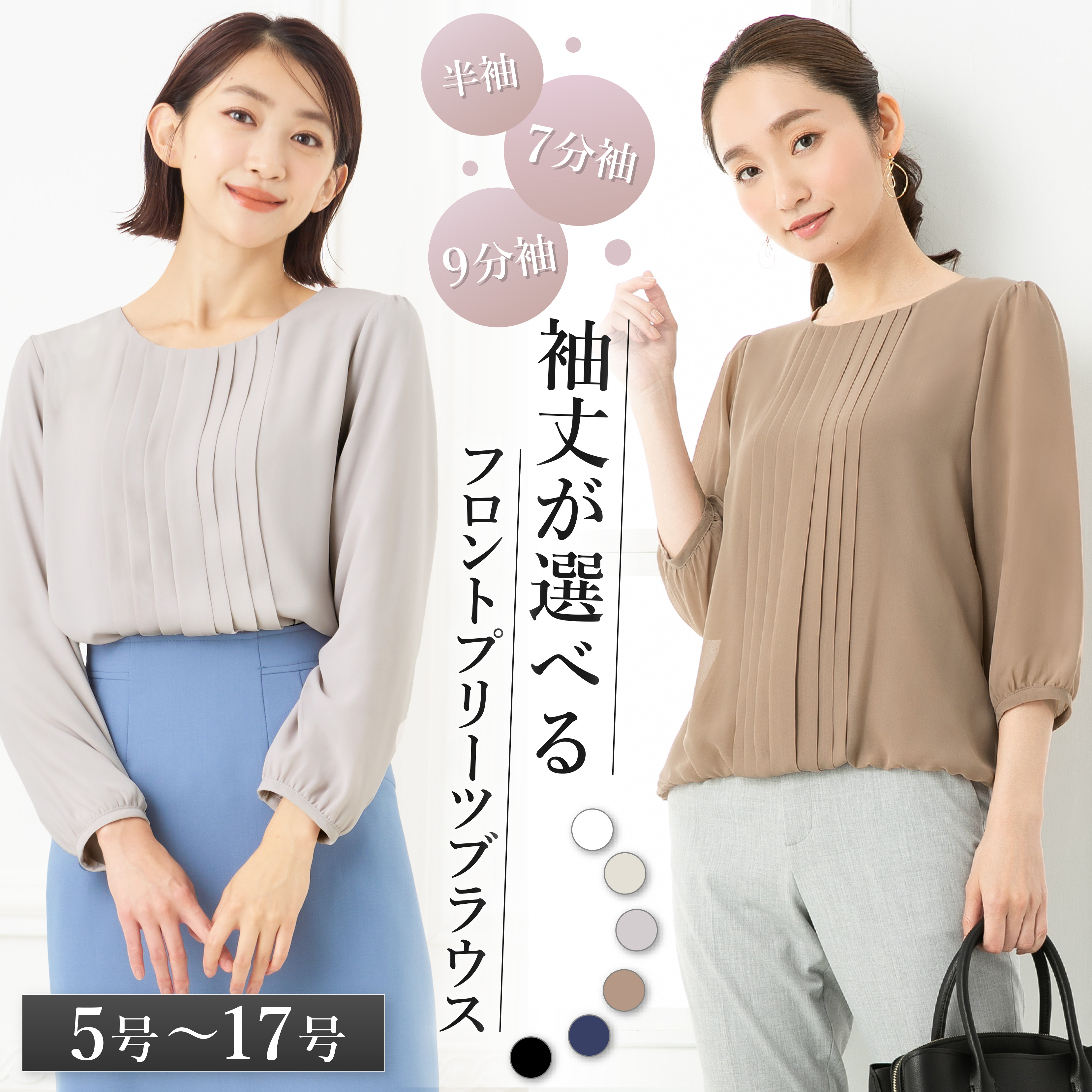 袖丈が選べる フロントプリーツ ジョーゼットブラウス | |