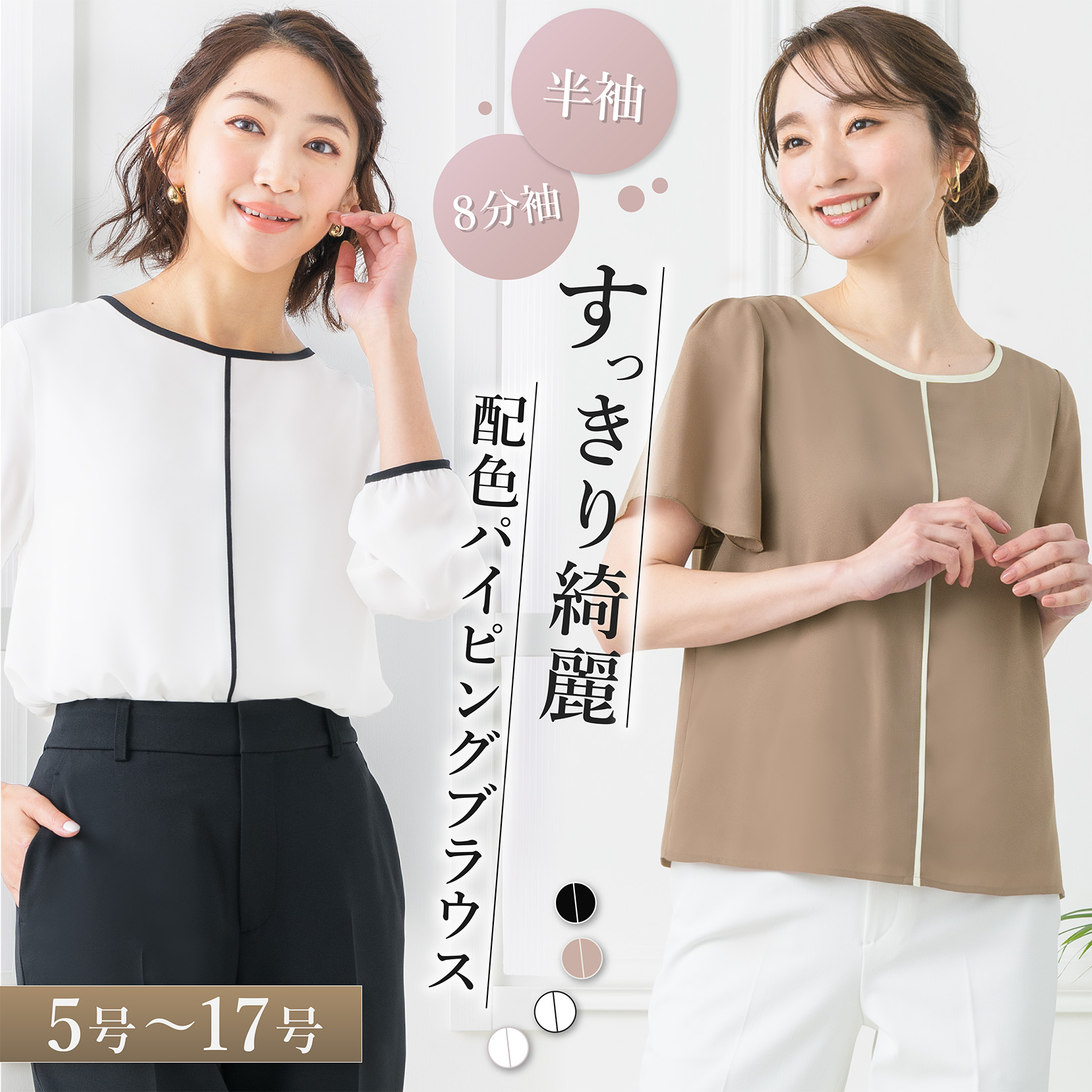 選べる半袖 or 8分袖 配色パイピングブラウス | |