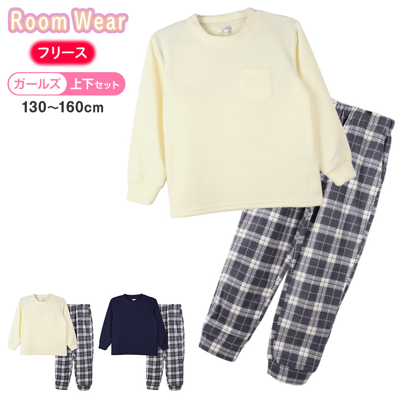 やわらかい肌ざわりと軽い着心地が魅力のマイクロフリースを使った女児向けの上下セットです。