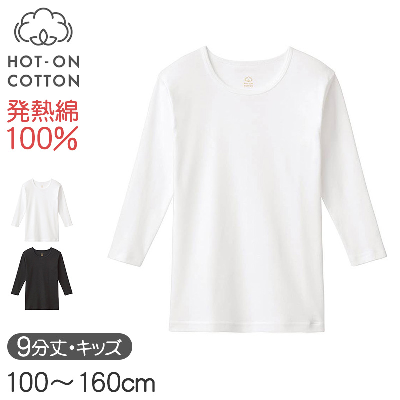 「ホットオンコットン 9分袖シャツ」は、吸湿発熱機能と綿100%の快適さを兼ね備えた、キッズ用のベーシックインナーです。