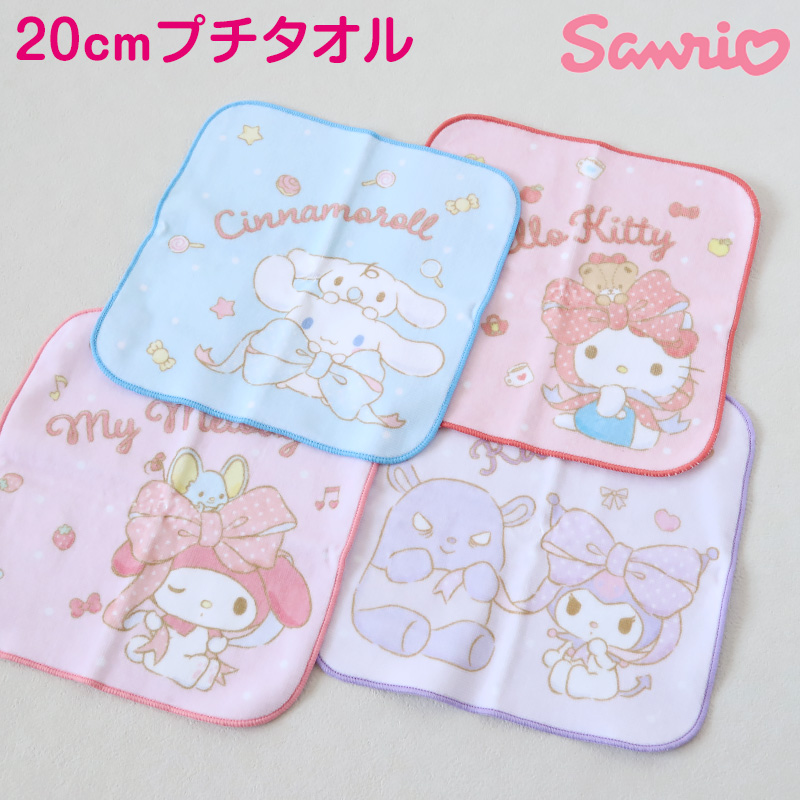 ハンドタオル タオル サンリオ ハンカチ キャラクター キッズ 子供 保育園 幼稚園 小学生 約20×20cm 景品 ウォッシュタオル おしぼりタオル 子供用タオル 入園
