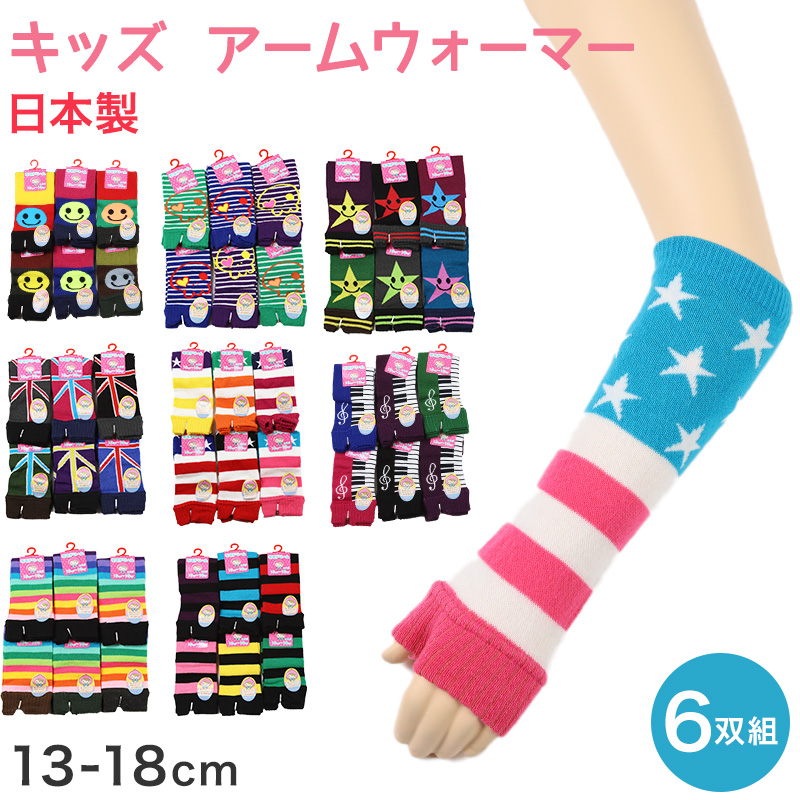 こちらは、元気なキッズにぴったりの日本製アームウォーマー6双セット。