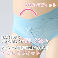 産前産後「ながく」使える レーシー浅ばき マタニティショーツです。