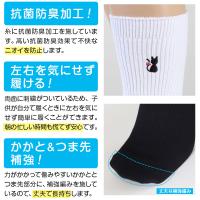 3本糸の補強編みで丈夫! サポート機能付き ワンポイントクルー丈スクールソックスです。