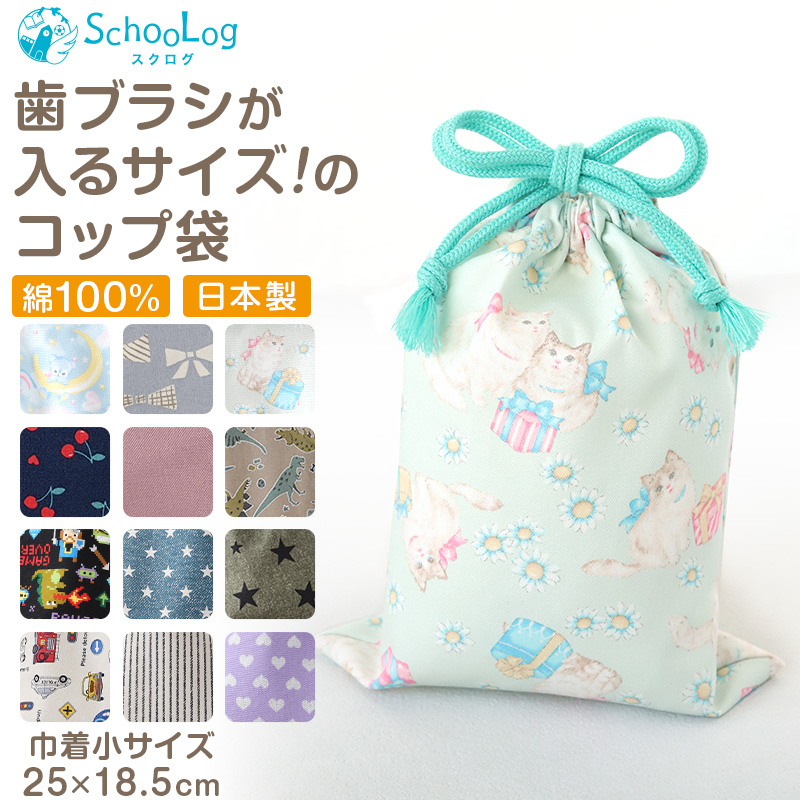 コットン100%で丈夫!柄が豊富なコップ袋(巾着 小)です。