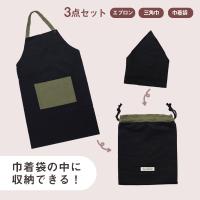 子供用エプロン・三角巾・巾着袋の3点セット。