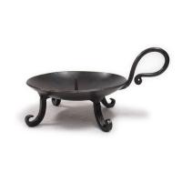 持ち手が付いたプレーンなディッシュタイプの受け皿に四本足の安定感のある形、トラディショナルなデザインで北欧スタイル、アンティーク、ナチュラルなインテリアに合うキャンドルスタンド。