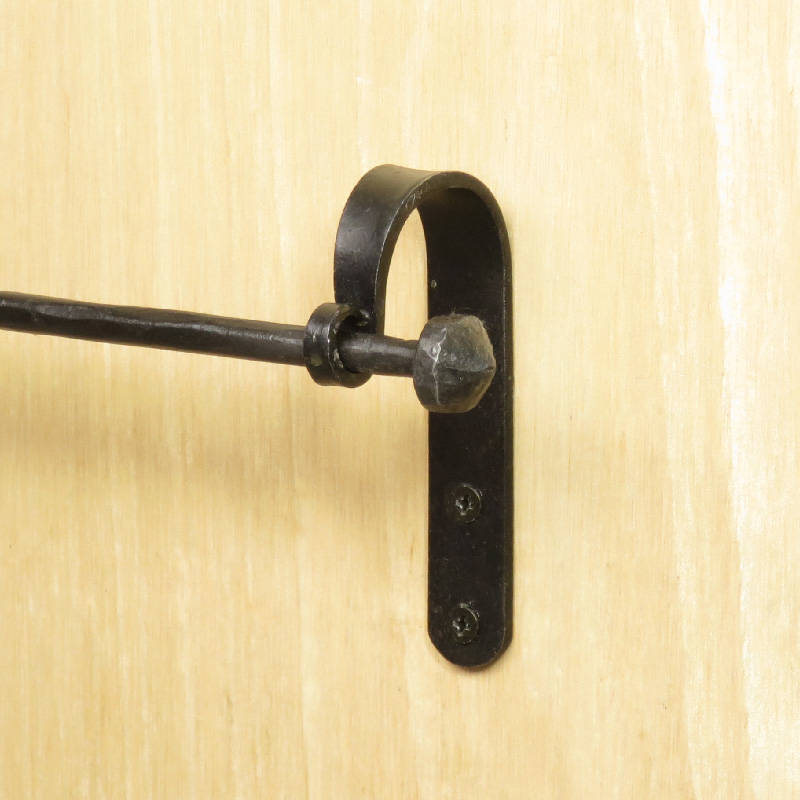 アイアンのバーホルダー、シンプル&プレーンなデザインの鍛鉄製でハンドメイドの風合いと質感が魅力的な作り。