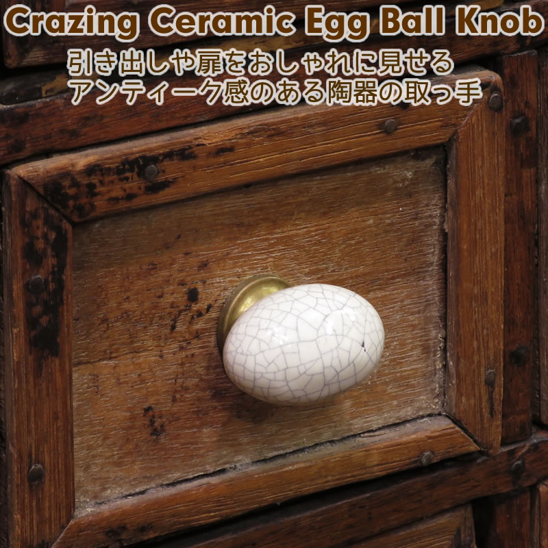 取っ手 セラミック 陶製 金具 つまみ ノブ DIY 引き出し 扉 クレイジングエッグボール