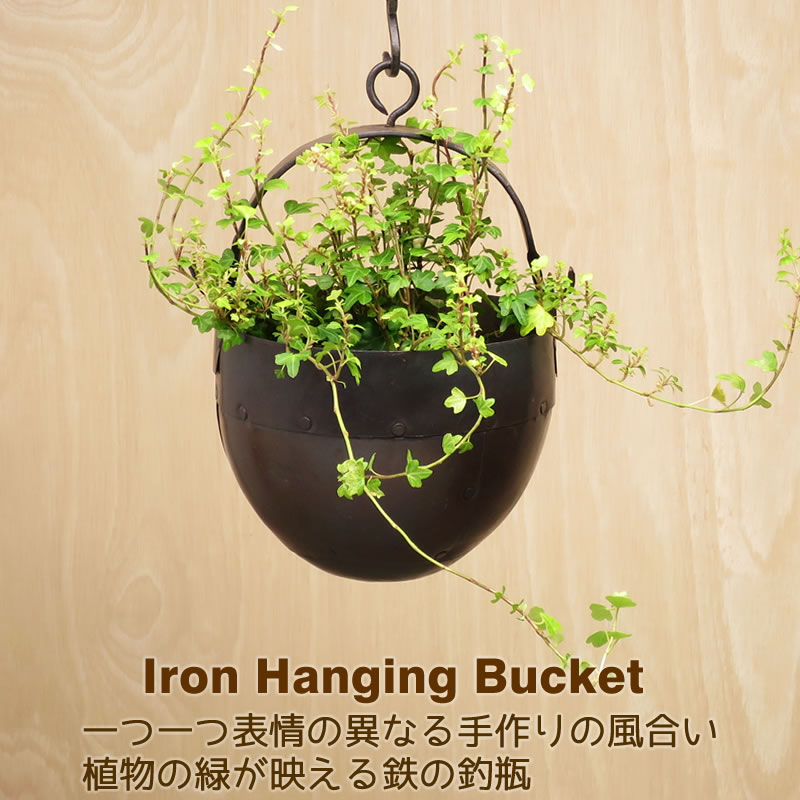 ハンギングポット アイアン プランターカバー 吊り下げ フラワーベース 花器 ガーデニング 園芸 おしゃれ 鉄のハンギングバケット