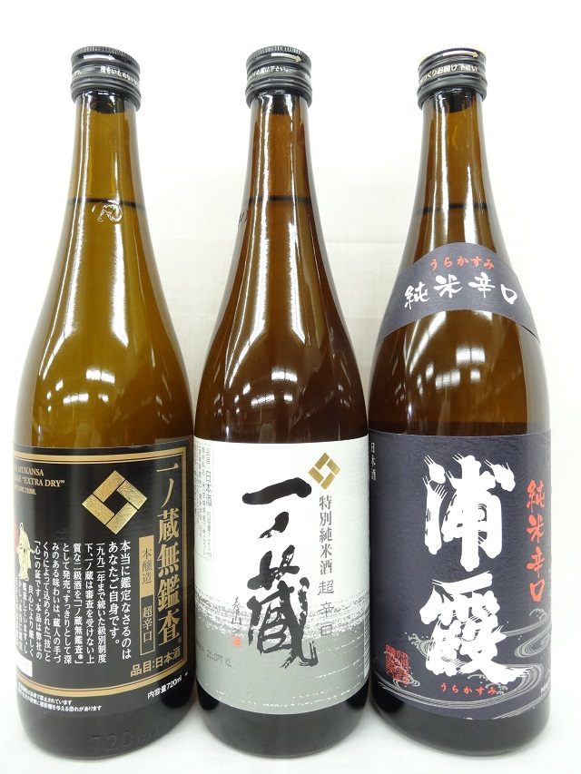 (浦霞 純米辛口、一ノ蔵 純米 超辛口、一ノ蔵 無鑑査 超辛口)