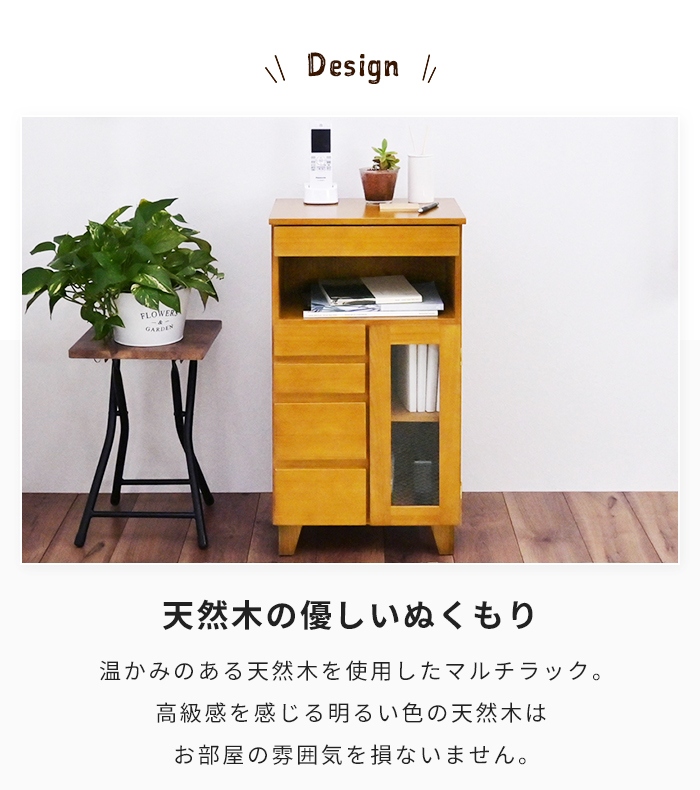 | ・天然木を使用した高級感のあるマルチラック ・引出し5杯+扉収納の大容量設計 ・ルーターやモデム収納に便利なコード穴付き ・3段階高さ調整可能な可動棚付き ・軽くて扱いやすい桐材の引出し ・脚のみ取付の簡単組立 |
