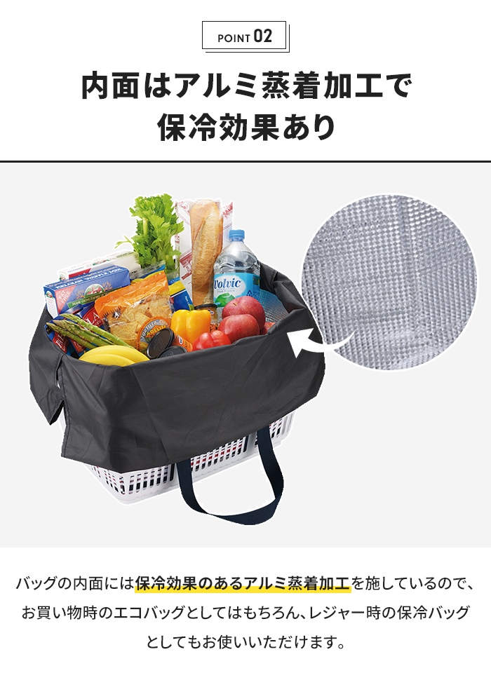 | アルミ蒸着加工で保冷効果がある買い物かごバッグです。 内面のメッシュポケットには保冷剤などを収納できるのでお買い物の帰りも安心。 袋詰めの煩わしさも解消できてレジ袋も使用しないのでとってもエコです。 巾着のマチが長いので、 大きな買い物カゴへのセットも簡単にできます。 持ち手が長く、ゆったり肩に掛けられ、持ち運びらくらくです。 |