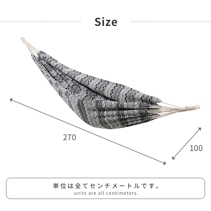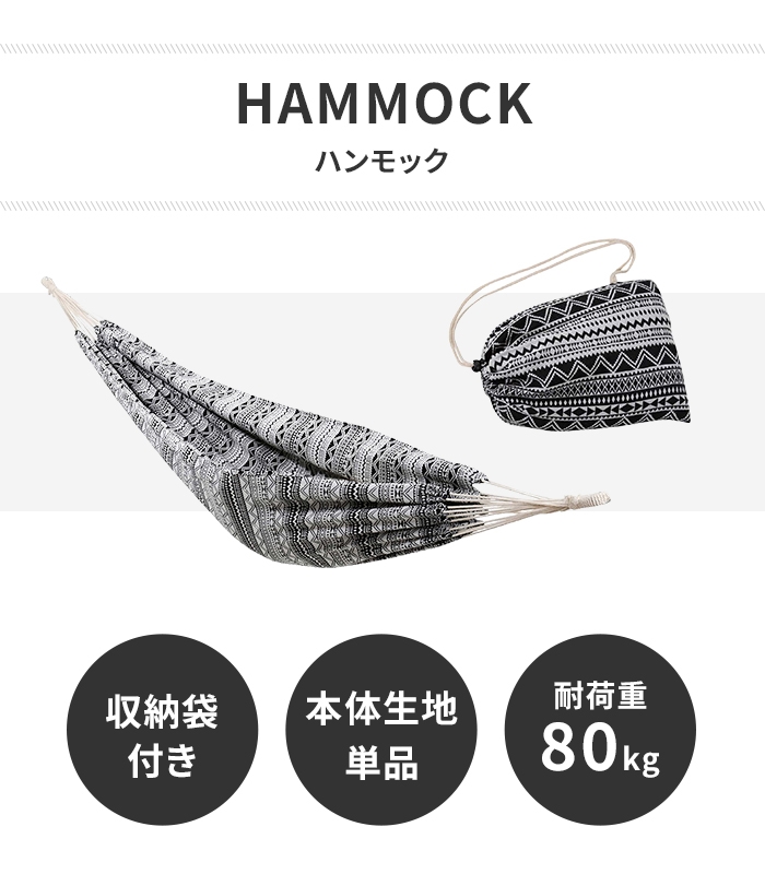 値下げ ハンモック 全長270 キャンプ用品 耐荷重80kg 収納袋付 アウトドア キャンプ グランピング ジオメトリック モノトーン おしゃれ
