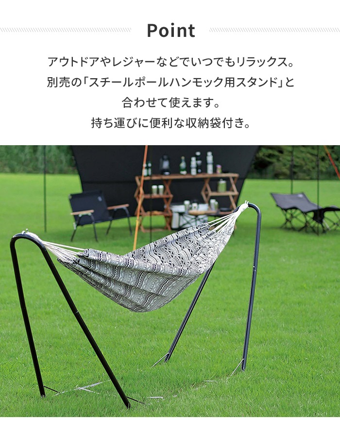 別売の「スチールポールハンモック用スタンド」と合わせて使えます。