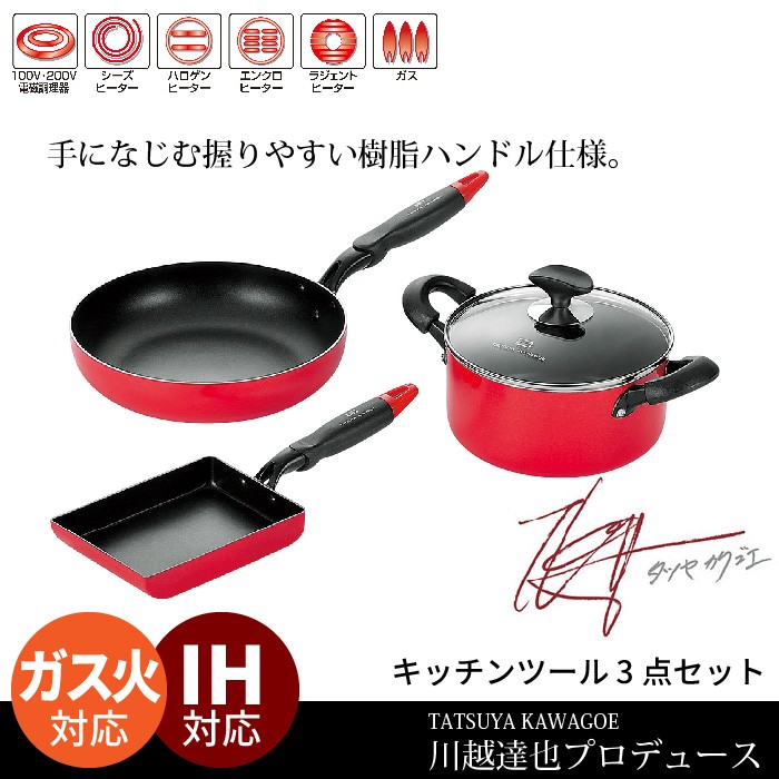 | ● TATSUYAKAWAGOE/川越達也 ● フライパン20cm ● フライパン26cm ● フライパン28cm ● フライパン28cm ターナー付 ● 玉子焼13×18cm ● 片手鍋16cm ● 片手鍋18cm ● 両手鍋20cm ● 両手鍋22cm ● 両手鍋24cm ● ソースパン16cm&フライパン20cm ● 片手鍋16cm&フライパン26cm ● 両手鍋20cm&フライパン26cm ● キッチンツール3点セット ● キッチンツール3点セット ● キッチンツール4点セット ● キッチンツール5点セット ● キッチンツール6点セット ● キッチンツール8点セット ● キッチンツール10点セット ※このページは[キッチンツール3点セット]を販売しております。 | |