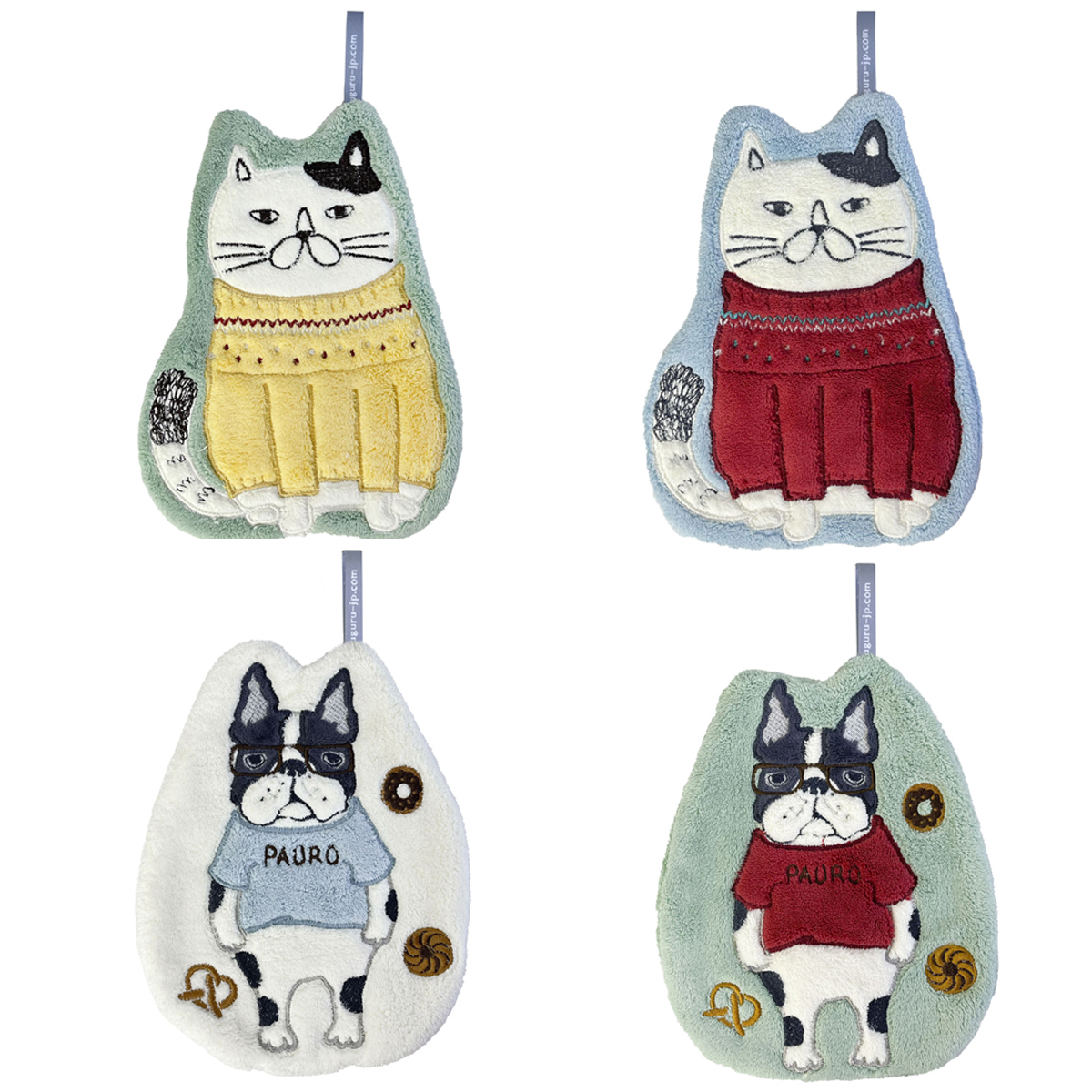 タオル ふわふわ ループ付き ダイカットタオル ねこぜがわさん パウロ 25-8558 25-8559 クスグルジャパン ハンドタオル かわいい プレゼント 2025年新作