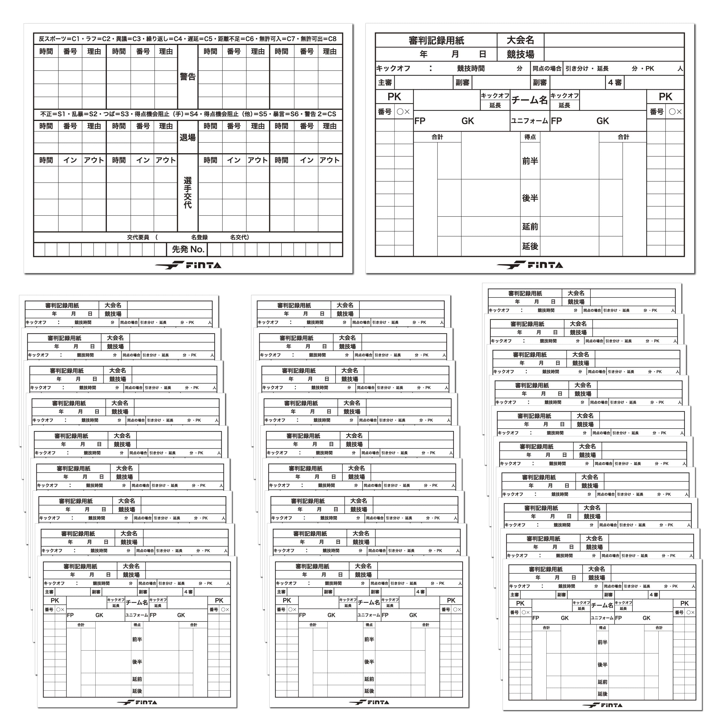 - サッカー、フットサルシーンで定番となっている数々のレフェリー、審判用のアイテムを数々リリースしているFINTA(フィンタ)の新デザインのレフェリー記録用紙30枚セット。 5人以上が交代する現在の公式戦ルールにも対応。
