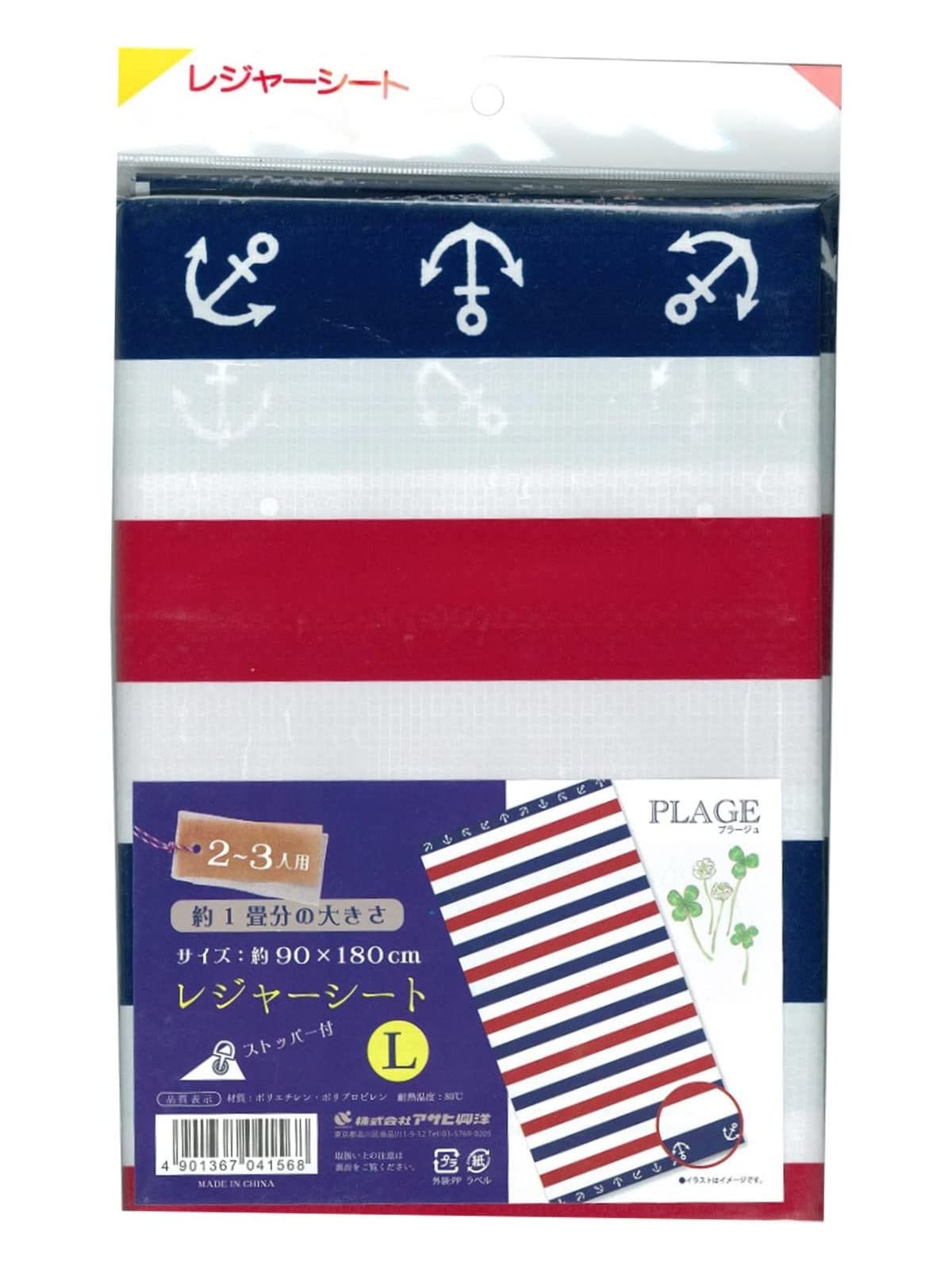 アサヒ興洋 レジャーシート 2?3人用 90×180cm 1畳 マリンボーダー シートピン付き プラージュ