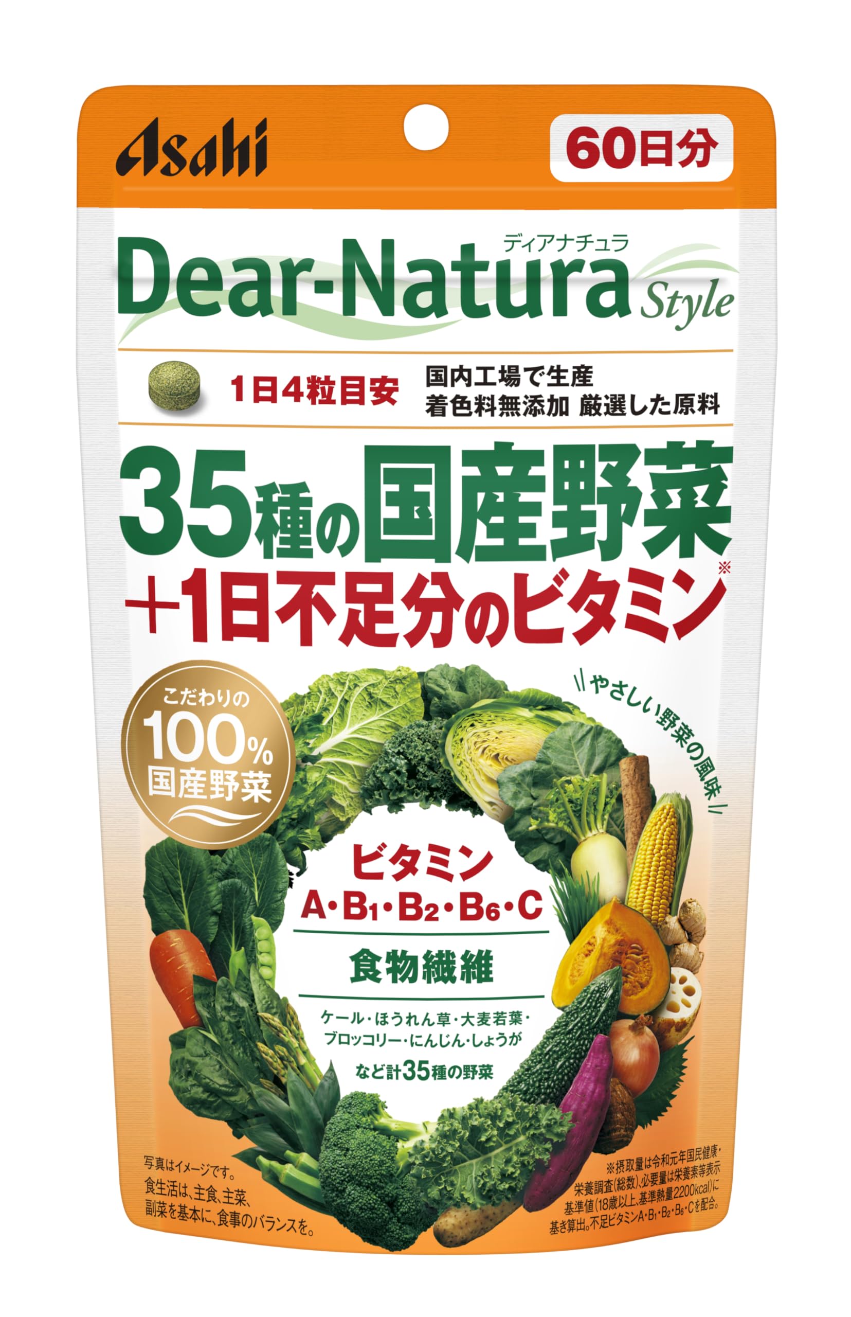 ディアナチュラスタイル 35種の国産野菜+1日不足分のビタミン 240粒(60日分) アサヒ サプリ Dear-Natura 国内工場で生産 パウチ