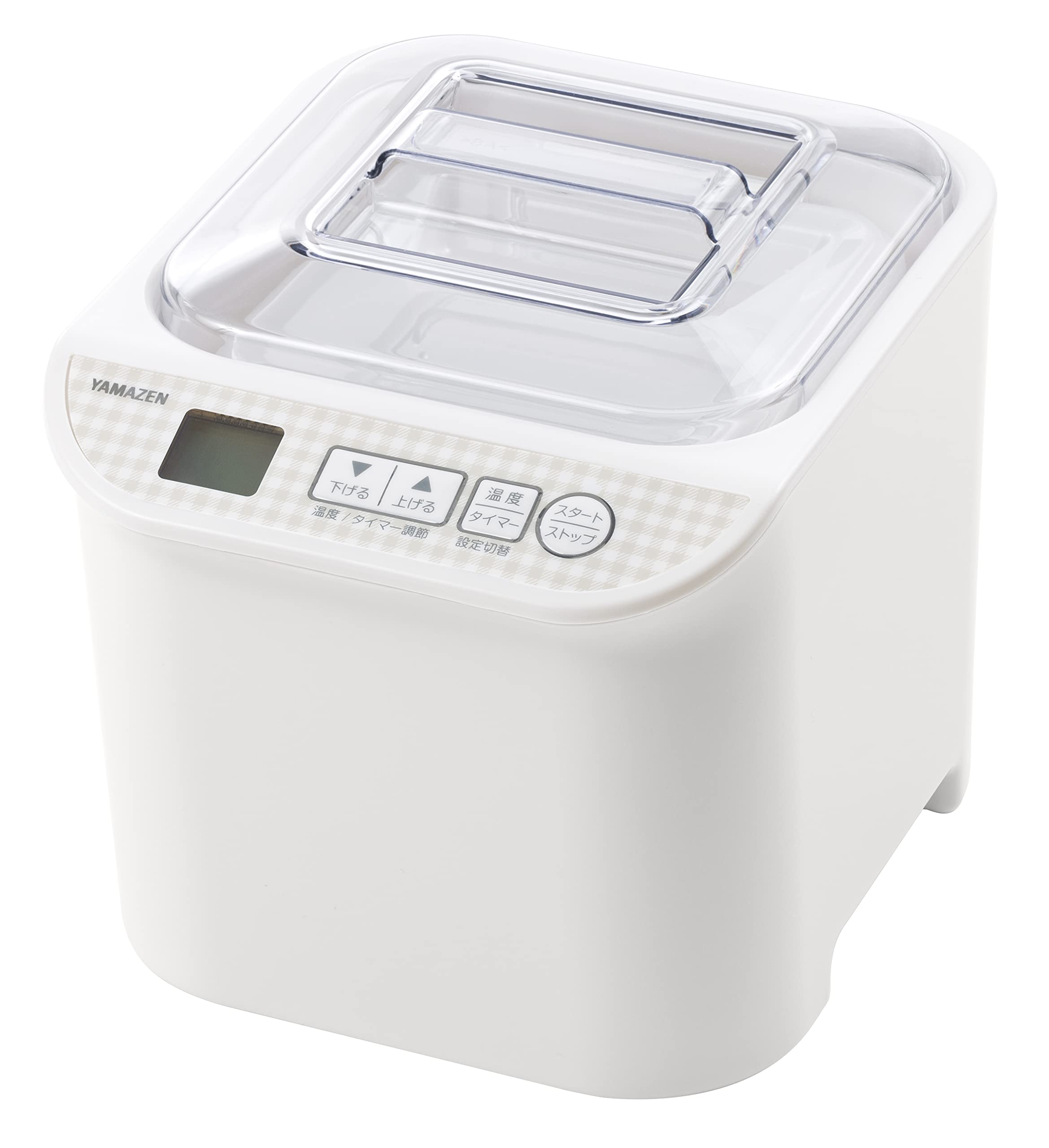 ◇発酵食品が手作りできるヨーグルトメーカー◇発酵食品には、腸内環境を整え、代謝が上がるといった効果が期待できると言われています。そんなヨーグルトなどの発酵食品は毎日食べたいもの。手作りすることで節約にもなります。手作りの発酵食品や低糖質メニューをご家庭で楽しみながら、健康にお過ごしください。◇低温調理もおまかせ◇ヨーグルトや発酵食品のほか、低温調理ができるので、ローストビーフやサラダチキンなどを作ることができます。温度調節は25℃~65℃、タイマー調節は1時間~48時間までの細かい設定が可能です。おうち時間の増加で運動不足を気にしたり、筋トレを行う方にもおススメです。◇種類豊富な発酵食品メニュー◇京風白みそや納豆、塩麹、甘酒などの発酵食品、またプレーンヨーグルトのほか、カスピ海ヨーグルトやケフィアヨーグルト、飲むヨーグルトなど、さまざまな発酵食品を手作りできます。初めての方でも安心、便利な「オリジナルレシピブック」が付属されています。◇便利で衛生的◇ヨーグルトは、牛乳と市販のヨーグルトを混ぜて調理します。専用容器が付属されていますが、500mLの牛乳パックをそのまま使うこともできます。容器に移しかえる必要がなく、使い終わったらそのまま捨てることができるので、便利で衛生的です。また、洗い物も少なくなるのでお手入れも簡単に行えます。◇商品仕様◇本体サイズ:幅17×奥行20.5×高さ18cm本体重量:850g電源コードの長さ:1.0m容量:専用容器の場合=1000ml/牛乳パックの場合=500ml温度調節:25-65℃(1℃単位)タイマー調節:1-48時間(1時間単位)◆商品ページに掲載の取扱説明書について◆取扱説明書の内容は、製品の仕様変更等で予告なく変更される場合があります。そのため、本サービスで提供している取扱説明書の内容は、製品本体に同梱されている取扱説明書の内容と異なる場合があります。安全上のご注意は、取扱説明書が制作された時点での法的基準や業界基準に応じた内容になっています。取扱説明書の著作権は、株式会社山善に帰属しており、許可無く取扱説明書の内容の全部、または一部を複製したり、改ざんすることはできません。お客様は、製品の使用のためにプリントアウト(印刷)することができます。
