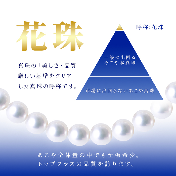 小キズはありますが、花珠特有の濃厚なテリとツヤツヤの光沢で身に着ければ目立ちません。真珠の輝きと耐久性に影響しない高品質を選別しておりますのでご安心下さい。