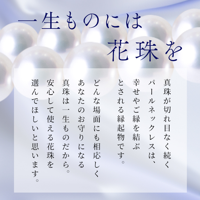 定番のシンプルなパールネックレスで結婚式、卒業式、入学式、冠婚葬祭からフォーマルイベント、ビジネスまで万能に対応します。丁寧に手作りしますので、長さや金アレ等、遠慮なくご相談下さい。