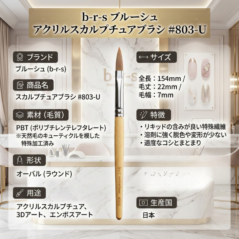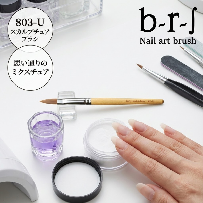 天然毛の繊細な操作性と、人工毛の耐久性。その両方を求めるプロネイリストの声に応える、b-r-s(ブルーシュ)の次世代アクリルブラシ#803-U。