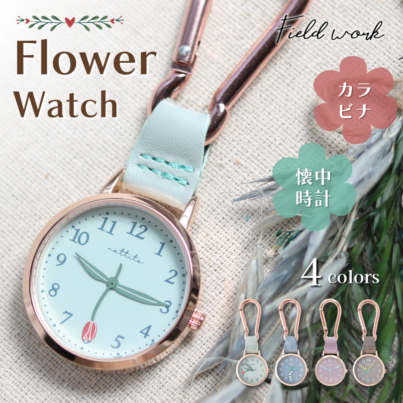 懐中時計 キーホルダーウォッチ フィールドワーク フルカ GY050 カラビナ レディース かわいい 花 おしゃれ 日本製ムーブメント 1年保証