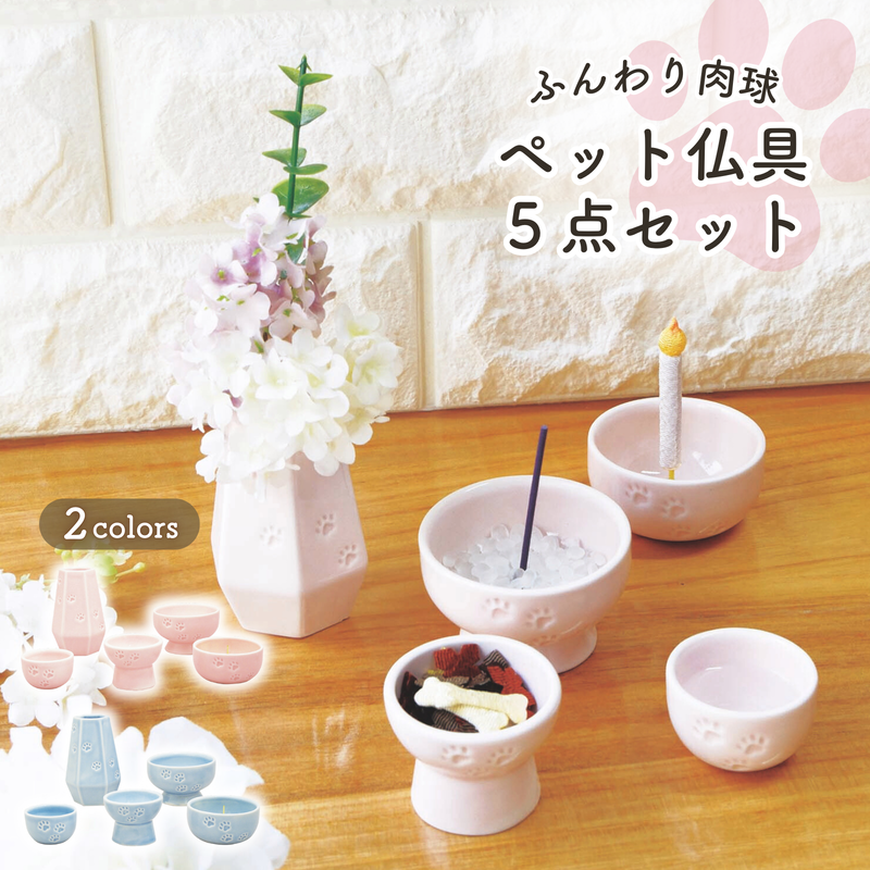 ペット 仏具 セット 5点 あしあと 肉球 犬 猫 うさぎ 仏具セット 陶器 ペット供養 ミニ コンパクト かわいい リュウコドウ