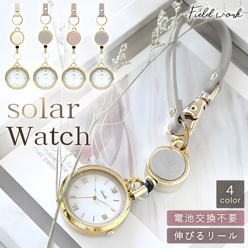 懐中時計 レディース ソーラー サウレ フィールドワーク キーチェーンウォッチ ストラップウォッチ おしゃれ 見やすい 日本製ムーブメント 1年保証