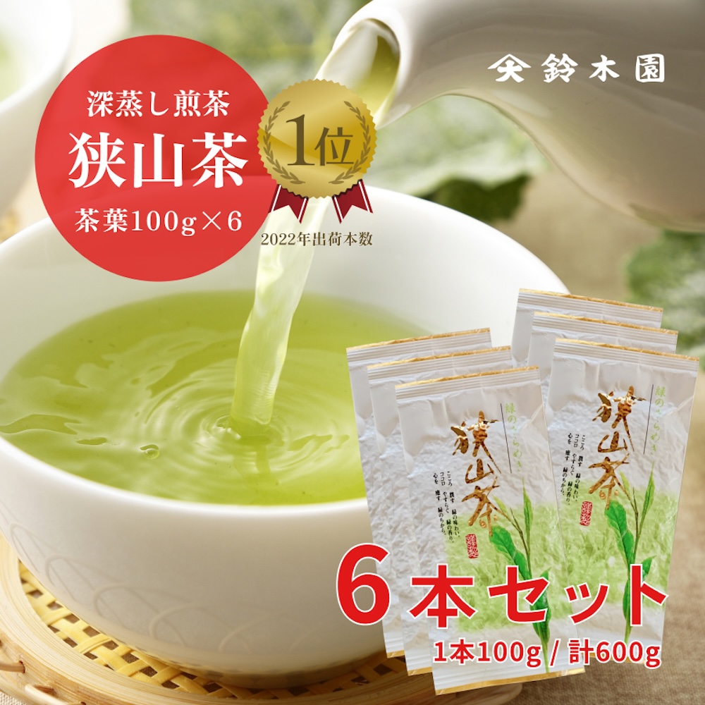 【のし対応不可】狭山茶 緑茶 煎茶 日本茶 茶葉 狭山 お茶 煎茶 送料無料 狭山 茶 100g 6本 セット メール便 狭山茶問屋 鈴木園