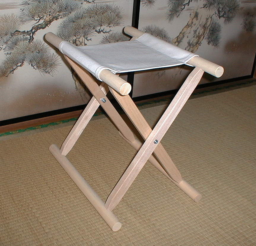 トップメーカー鈴木木工所の角太足胡床 白木白布(木製折りたたみ椅子)