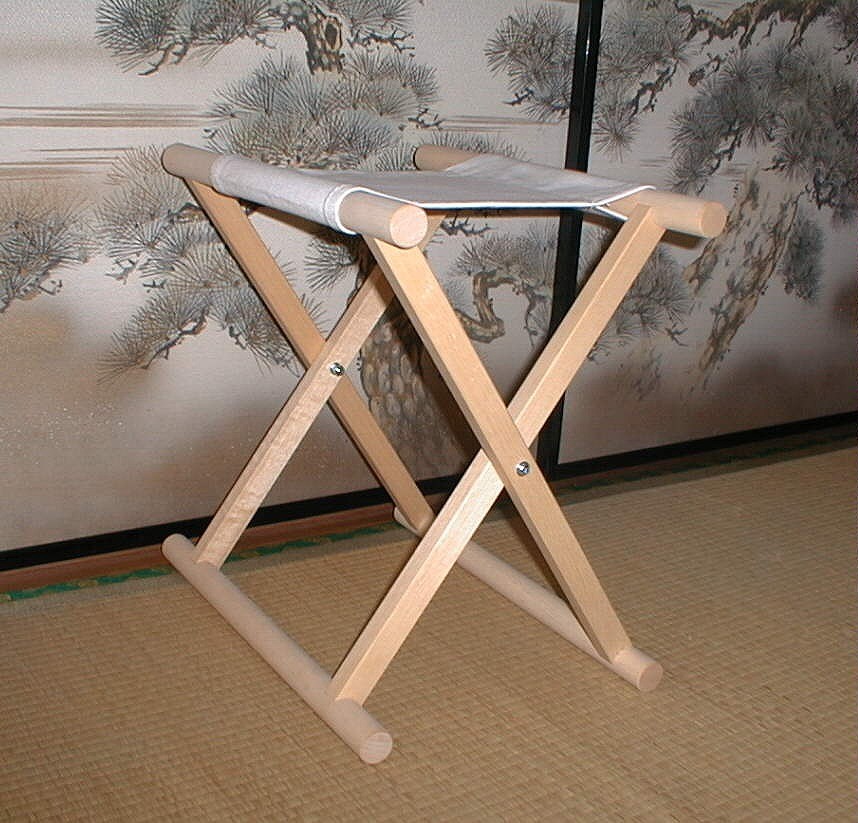 トップメーカの床几椅子 白木白布(和風の木製の折り畳み椅子)