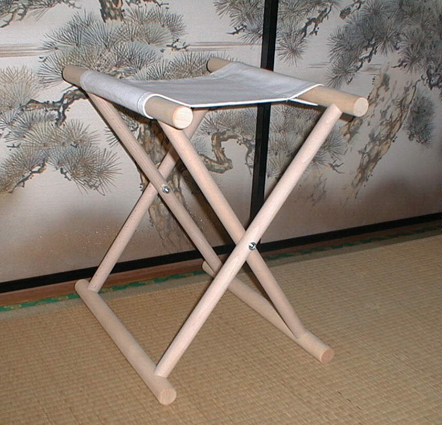 トップメーカー鈴木木工所の丸足胡床 白木白布(木製折りたたみ椅子・床几・相引)
