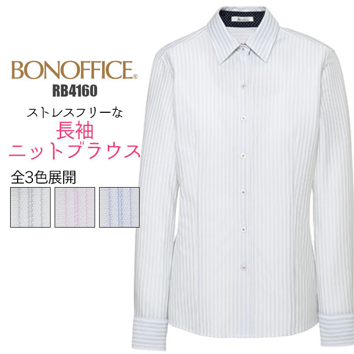 事務服 RB4160 ブラウス 長袖 ニット ストライプ BONMAX