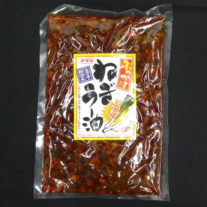 原材料:ねぎ、なたね油、ごま油、フライドオニオン、フライドガーリック、砂糖、アミノ酸液、豆板醤、食塩、調味料(アミノ酸等)、ソルビット、乳化剤、パプリカ色素、酸化防止剤(V.C)、酸味料、甘味料(ステビア)、乳酸Ca 、香辛料、(原材料の一部に小麦を含む)