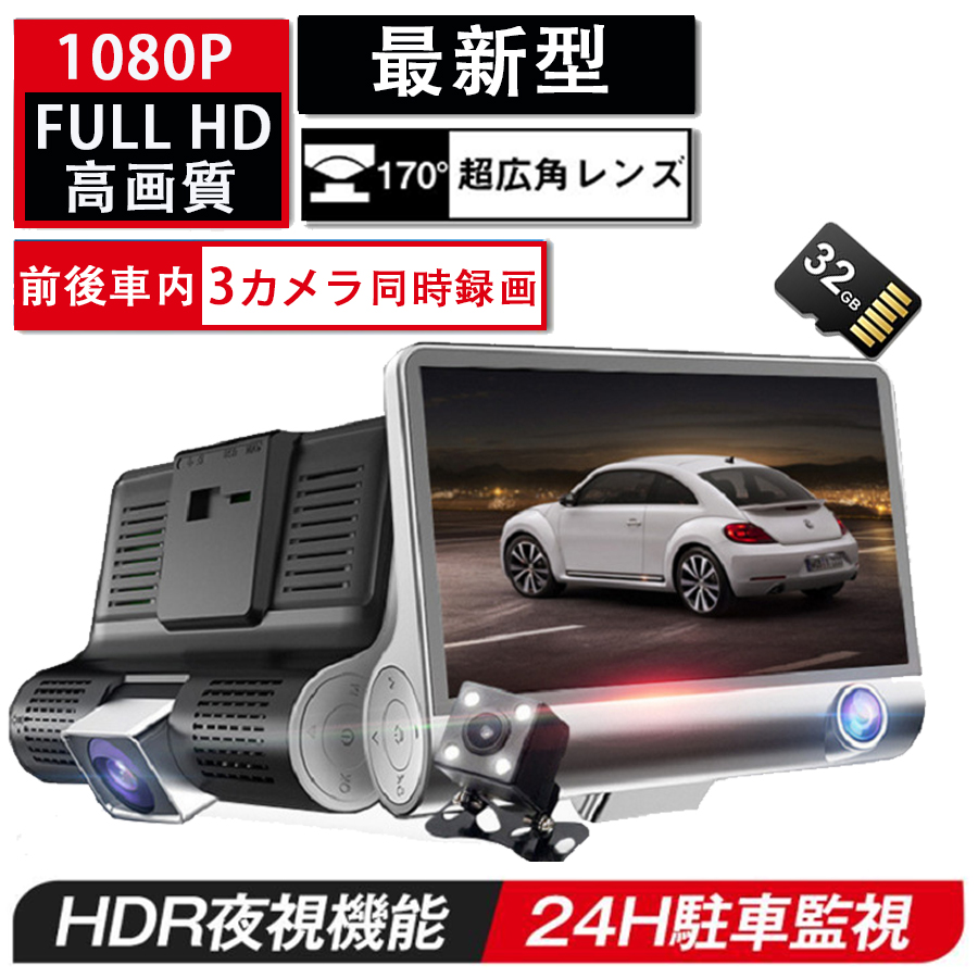【4インチ液晶付き&前後3カメラ同時録画】:4.0インチのドライブレコーダーでビデオの中に車のナンバーや細かい部分をはっきり見られます。フロントカメラ:170°広角、車内カメラ:120°、広角リアカメラ:140°広角により、多車線幅の道路でも死角せず前方の状態がもちろん確認できて、後方から追突された場合もしっかり記録できます。