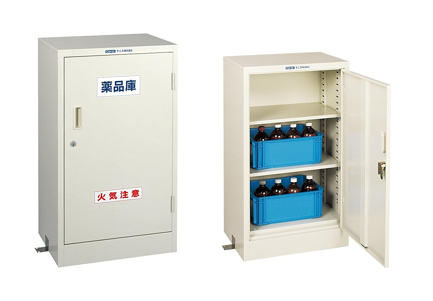 付属:床固定金具x2、ラベル2種(薬品庫、火気注意)