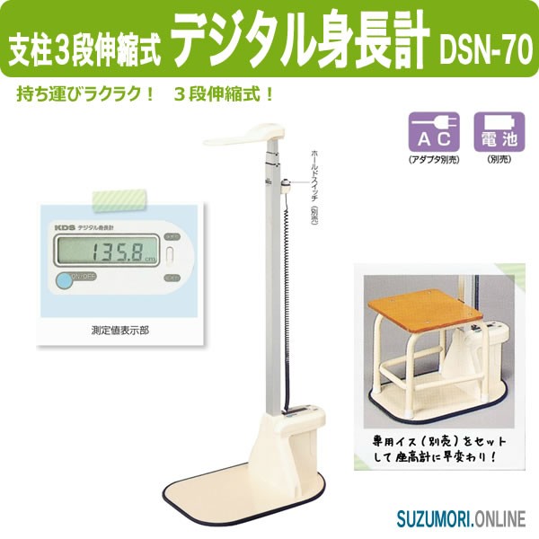 「支柱3段伸縮式 デジタル身長計 DSN-70 4872600」は、持ち運びが大変楽な3段伸縮式の身長計です!