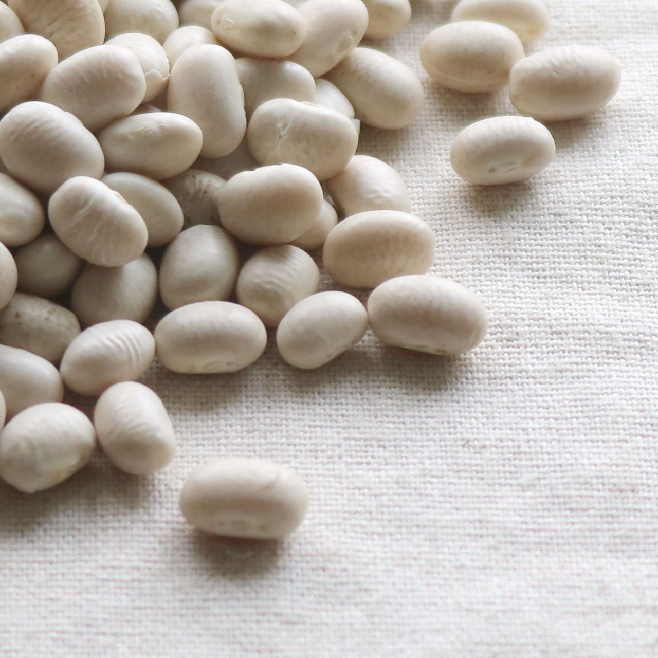 北海道が主産地のいんげん豆の一種です。手亡(てぼう)の名前は、ツルがないので支柱にする手竹が要らないことに由来します。明治期には輸出用として盛んに栽培されていました。