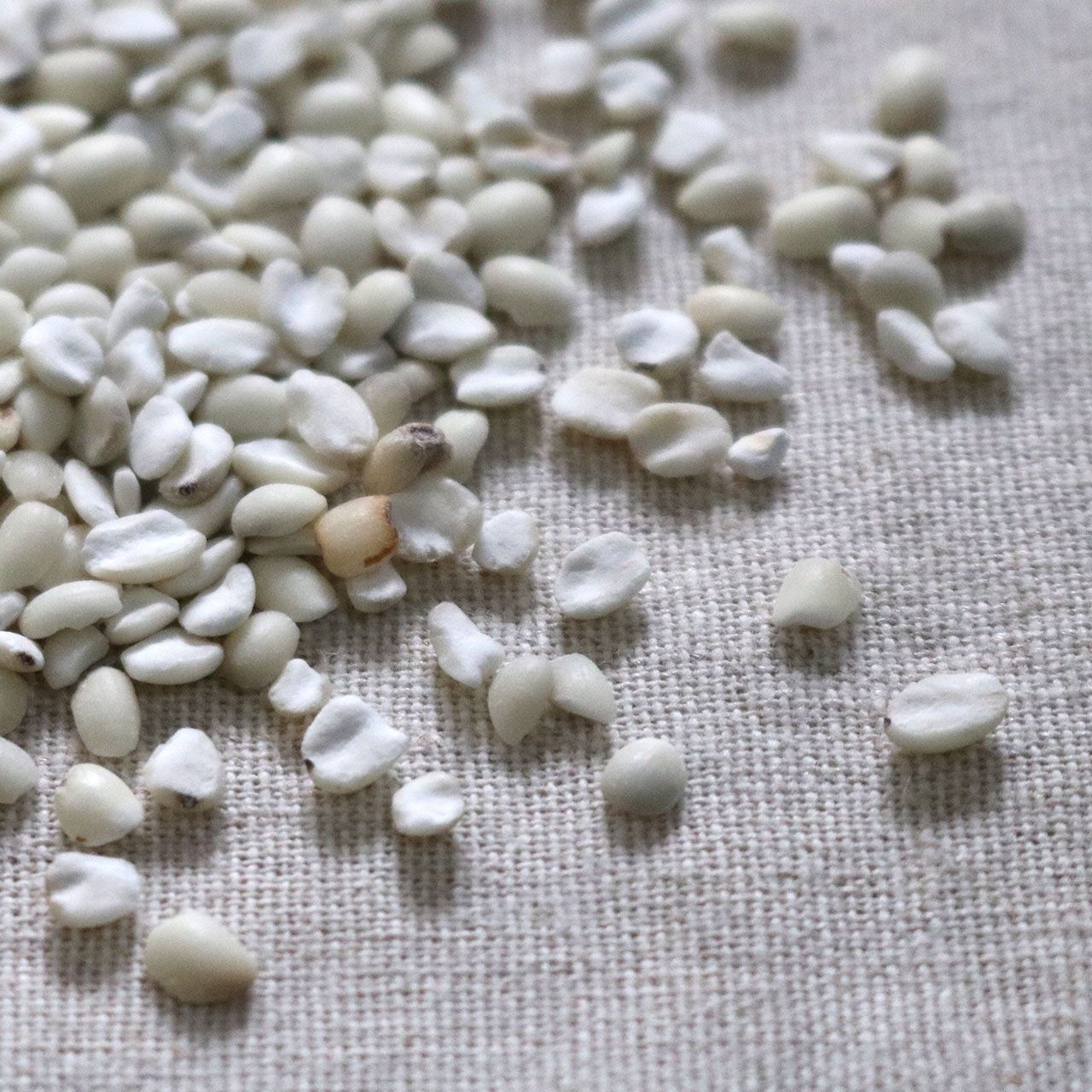 はと麦を挽き割りにしたものです。大粒で吸水しにくいはと麦を挽き割りにすることで、雑穀ごはんにした時などに食べやすくなる利点があります。