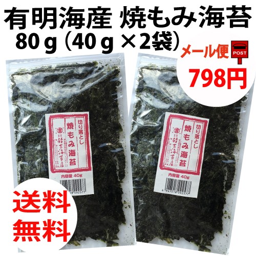 有明海 焼もみ海苔 80g 1袋40g×2袋 切り落し海苔 メール便 同梱・代引、不可