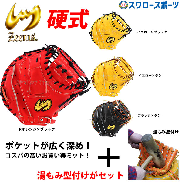 ●本体カラー×レースカラー:イエロー×タン、イエロー×ブラック、ブラック×タン、Rオレンジ×ブラック●捕手用●右投げ●素材:ステアレザー●内裏革:ソフトステア●ハミダシ:ツマミ●メーカー品番:SV400CM ジームスの硬式キャッチャーミット!ポケットが広く深め!コスパの高いお買い得ミット!!