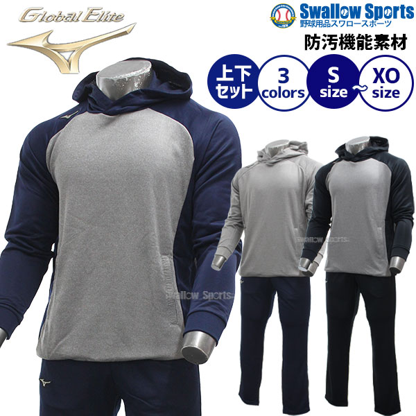 野球 ミズノ ウエア 大人 一般 トレーニング メンズ グローバルエリート スウェット パーカー 長袖 上下セット12JE7K10-12JF7K10 MIZUNO ウェア 秋用 冬用 秋冬