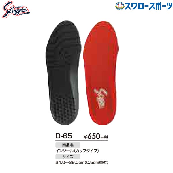 ●商品名:野球 久保田スラッガー インソール 中敷き(カップタイプ) D-65 野球部 野球用品 スワロースポーツ●サイズ/24.0〜29.0cm(0.5cm単位)●メーカー品番:D65