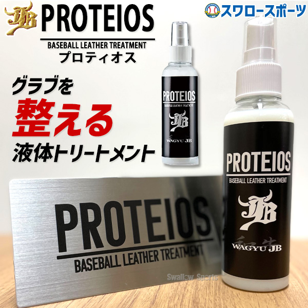 | 仕様・規格 | ●キャメル系のカラーの革にもおすすめ!色ムラや染みが出来にくい! ●JB グラブ・ミット用 液体トリートメント PROTEIOS(プロティオス) ●容量:150ml JB和牛グラブに最適のメンテンナンス用品! 「PROTEIOS」(プロティオス)は、“特許”という科学的根拠に裏付けされたバランスで、成分が配合されている為、革の繊維質(内部)への浸透性が非常に高くグラブの状態を内側から整えることが出来ます。 グラブに使われる牛革の約90%がタンパク質で構成されていることから、素材との相性が非常に優れているタンパク質由来の成分が含まれていることが特徴です。 JBの商品購入はこちら 重くならない! PROTEIOS(プロティオス)はいくら塗っても重くなりません。 そして汚れの詰まった毛穴を綺麗にして呼吸の出来る革に整えてくれます。 軽いグラブは操作性も格段に向上します。 PROTEIOS(プロティオス)があればずっと軽い状態のグラブに育てることも可能です。 ベタつかない! PROTEIOS(プロティオス)は余分な油分を含んでいないことから塗った後の仕上がりは非常にサラッとした仕上がりになります。 「革」を柔らかくし、潤いを与える! PROTEIOSはグラブ革に含まれる油分と水分に最も近いバランスで配合されている為、革の繊維質(内部)への浸透性が非常に高くグラブの状態を内側から整えることが出来ます。 汚れを落とし、劣化を防ぐ! グラブに染みこんだ不要な汗や土の汚れ等を革の毛穴から除去する効果を有しており、呼吸ができる革の状態を維持することが出来るので、長年愛用してヘタってしまったグラブへのアンチエイジング効果も期待できます。 JBの商品購入はこちら |
